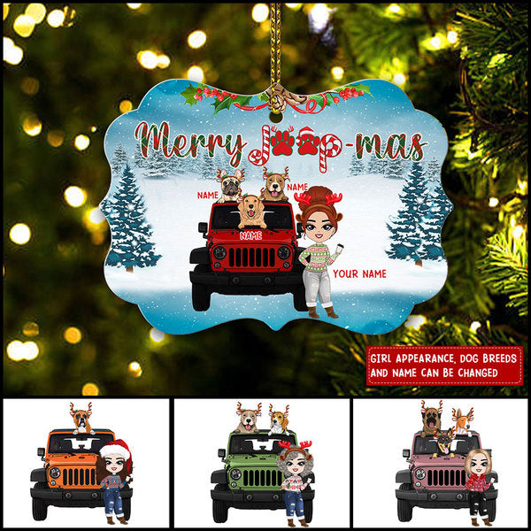89Customized Merry Jeep-mas jeep girl chibi and dogs Customized Ornament