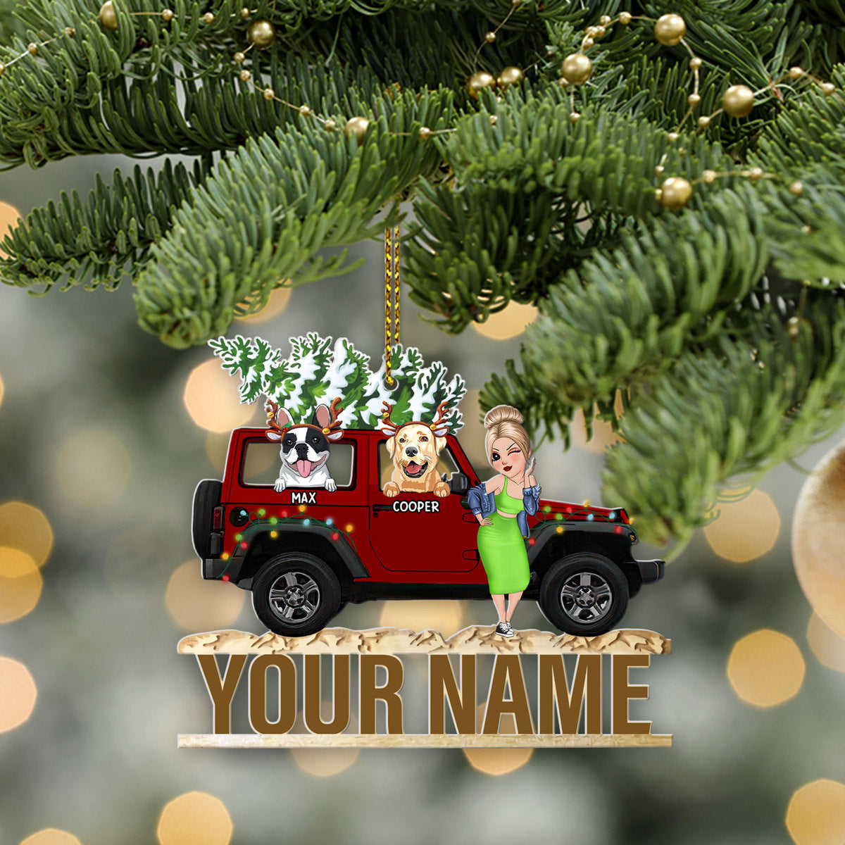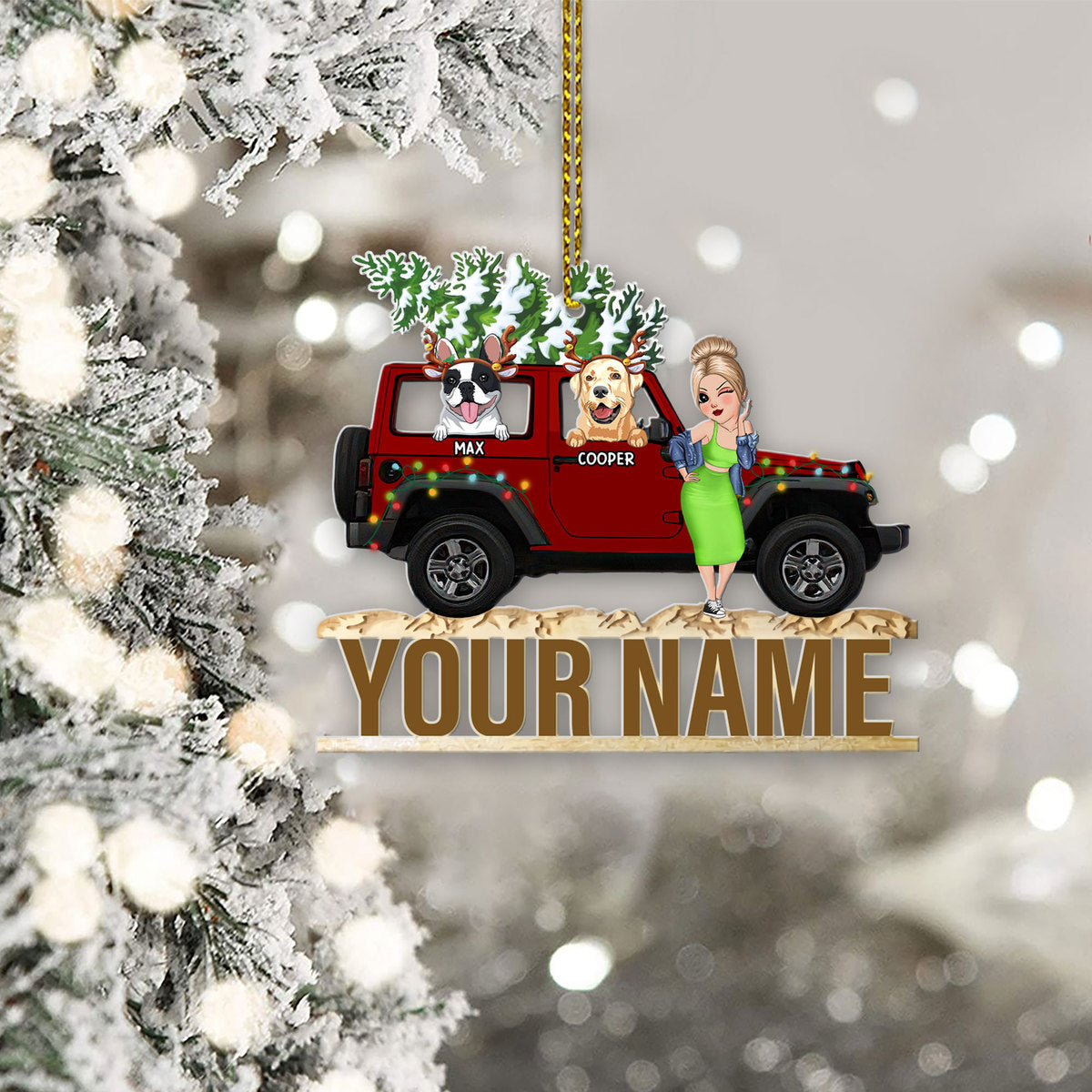 89Customized Christmas Jeep girl and dog Customized Ornament